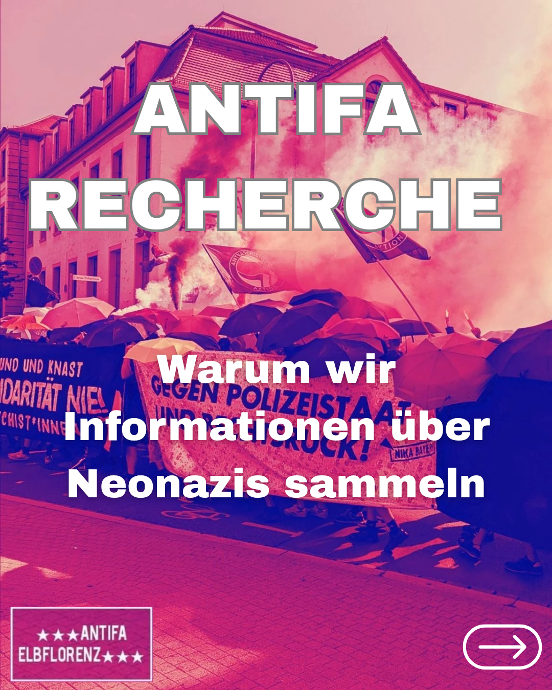 Indem antifaschistische Recherche aufklärt und dafür sorgt, dass Neonazis und ihre Strukturen der organisierten Menschenfeindlichkeit bekannt werden, nimmt sie ihnen Handlungsspielräume im politischen Kampf. Darüber hinaus sollen durch Recherche und Bekanntmachungen Betroffene rechter Gewalt vor Übergriffen geschützt werden: Neonazis, die wissen, dass Antifaschist*innen ihre Namen und Gesichter kennen, handeln weniger offen gewaltvoll.