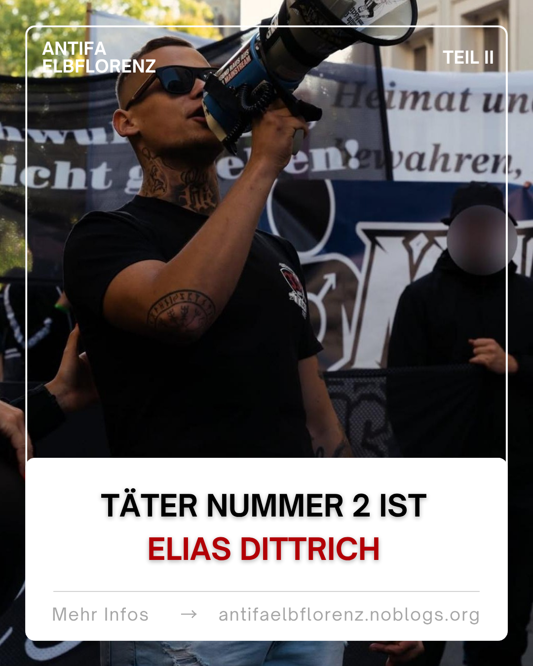 Von Beruf ist Elias Dittrich Maler. Er arbeitet für die Görlitzer Firma des Malermeisters Carsten Ratayczak auf der Rothenburger Str. 27. Er postet auf Insta regelmäßig Fotos seiner Arbeit, in der Frima scheinen noch weitere Neonazis beschäftigt zu sein. Dass Dittrich trotz seiner Beteiligung am Angriff nicht vor Gericht steht, halten wir für einen Skandal. So kann ein gewaltbereiter Neonazi wieter unbehelligt sein Unwesen in Görlitz treiben. Infos zu den weiteren Tätern folgen!