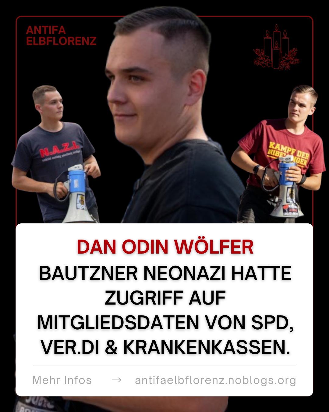 Es war Wölfers Job, die Geschäftsdaten von Krankenkassen, Gewerkschaften, Parteien und anderen Institutionen zu verarbeiten. Dabei hatte er die Möglichkeit, personenbezogene Daten von Mitgliedern oder Kunden dieser Institutionen zuzugreifen. Vor wenigen Wochen wurde Dan Odin Wölfer dann von der MediaKom GmbH gekündigt. Ausschlaggebend war seine präsente Rolle innerhalb der Bautzner Neonazi-Szene. Dennoch hatte er bis dahin die Möglichkeit, Zugriff auf die Mitgliedsdaten von Krankenkassen und Gewerkschaften sowie denen der SPD zu nehmen.